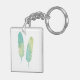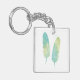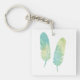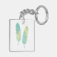 Boho Feather Watercolor Green and Blue Key Ring