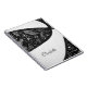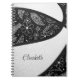 This cute basketball themed notebook features the realistic image of an abstractly oversized basketball that has recolored alternating black and white panels with delicate hand-drawn doodle flowers, feathers and paislies patterned on the basketball's black panels - customise with the athlete's name - by katz_d_zynes