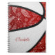 This cute basketball themed notebook features the realistic image of an abstractly oversized basketball that has recolored alternating red and white panels with delicate hand-drawn doodle flowers, feathers and paislies patterned on the basketball's red panels - customise with the athlete's name - by katz_d_zynes