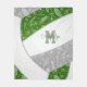 This boho volleyball themed fleece blanket for her features the realistic image of an abstractly oversized volleyball that has green, grey and white panels - a continuous doodle pattern of paislies, flowers and feathers in white covers the volleyball's green and grey panels - personalise with the athlete's name and monogram, varsity letter or jersey number - by katz_d_zynes