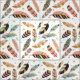 Boho Feathers Pattern on White Fabric