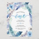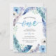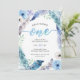 Blue and purple watercolor feathers and flowers feature on this gorgeous boho first birthday party invitation.