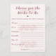 Boho Floral Advice for the Bride Shower Game Card