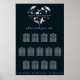 A chic and modern 14-Table wedding seating chart. Boho heart creates a lovely top border. Neutral blush feathers provide the structure for the heart. Small pink, blue and red flowers give it texture and a romantic vibe. A stripe is carved out of the heart to create space for the wedding couple's names. The text is a soft blush neutral, which looks wonderful against the deep navy blue - almost black - background. A companion print creates the bottom border. This Boho seating chart is part of the Spiced Blush collection. In addition to seating charts and other signs, you'll also find menus, place cards, table number cards. Just what you need to create a personalised wedding ceremony or reception. You should see a link to it on this page. If you don't or need help with an item, please contact me.