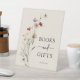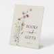 Boho Floral Baby Shower Pedestal Sign. This stylish & elegant baby shower 'books and gifts' pedestal sign features gorgeous hand-painted watercolor wildflowers arranged as a lovely wreath and elegant calligraphy script. Find matching items in the Boho Wildflower Baby Shower Collection.