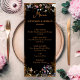 Add an elegant touch to your reception with our Boho Floral Black Butterfly Garden wedding menu. Designed for a nighttime wedding, this menu features a black backdrop adorned with whimsical wildflowers and delicate butterflies. The vintage floral design and boho aesthetic create a charming and sophisticated look, making it a perfect fit for your outdoor garden wedding.