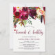 This trendy brunch and bubbly invitation features pretty watercolor flowers in vibrant shades of marsala, wine, deep green, red, and purple, and matching modern typography.