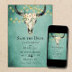 Boho Floral Cow Skull and Lights Turquoise Wedding Save The Date
