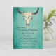 Boho Floral Cow Skull on Turquoise Wedding Invitation