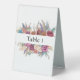 A pretty boho floral design on this lovely elegant pink blue and purple floral wedding table tent sign. Great for wedding tables or any special event.