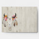 Boho floral and feather antlers cow skull rustic wood wedding envelope.