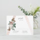 A romantic wedding invitation response card featuring beautiful vintage botanicals atop a rose gold structural pyramid.
