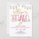 Boho Floral Hop On Two It Birthday Invitation, Blush Pink Coquette Bow Bunny Kids Birthday Invite, Editable Easter Theme Girl Birthday Invite,