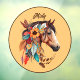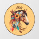 Beautiful window cling for home, office or even the rear window of your car or SUV! Design features an AI generated horse portrait with Boho style feathers and flowers. Personalise with name or monogram
