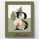 Monogram letter B with Boho style floral bouquet on colorblock background. Personalise with last name or other special message