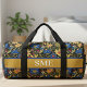 This vibrant duffel bag is an ideal gift for the woman who loves to travel in style and wants a unique touch on her gear. The design features a lush, colorful wildflower pattern set against a dark background with a bold gold stripe for her initials. It serves as a thoughtful graduation gift or a practical bridesmaid gift for an upcoming destination wedding. Whether headed to the gym or a weekend getaway, this eye-catching duffel bag combines high-end fashion with everyday utility.