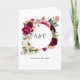 Boho floral wedding invitation featuring peony and anemone flowers, greenery and feathers in accents of burgundy plum and blush pink customisable to your specifics.