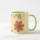 Add a touch of boho charm to your daily routine with this stylish mug. Featuring a warm beige background adorned with charming flowers, elegant green leaves, and minimal star accents, this mug combines functionality with a cosy aesthetic. The green handle and rim enhance its unique design, making it perfect for coffee, tea, or any beverage of choice.