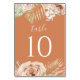 Boho Floral, Palm and Pampas terracotta wedding Table Number