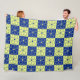 Boho Floral Pattern Blue Yellow Fleece Blanket
