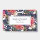 Colourful floral badge for an interior designer, event stylist, makeup artist or similar, featuring hand-drawn flowers against a dark blue background.