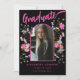 Boho Floral Photo Black and Pink Script Grad Party Invitation