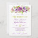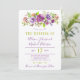 Rustic elegant wedding invitation template featuring a pastel purple, violet, mauve, lilac, and blush pink peony bouquet with fern and sage green foliage and modern typography script lettering. +++++++++++++++++ The invitation is suitable for modern rustic country spring or summer boho chic floral garden backyard outdoor farmhouse wedding receptions and celebrations.