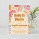 Celebrate the arrival of a little one with this beautiful “Baby in Bloom” baby shower invitation. Designed with a charming boho aesthetic, this invitation features soft pastel rainbows, whimsical floral illustrations, and a trendy retro font that creates a warm and joyful atmosphere.
