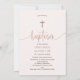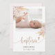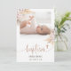 Boho Floral Rose Gold Calligraphy Photo Baptism Invitation