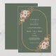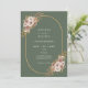 Boho Floral Sage Green and Gold Wedding Invitation. This invitation has a soft, elegant style with a feminine floral frame. Delicate floral illustrations add a touch of whimsy and nature-inspired charm. The layout is clean and organised, using a centred alignment and clear spacing to create a refined look.. Overall, the design feels romantic yet understated, perfect for a modern but traditional wedding.