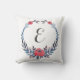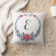 Boho Floral Watercolor Red Roses | Monogram Cushion