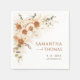 Add a touch of elegance to your reception tables with these custom wedding napkins, designed with boho terracotta tones, watercolor calla lilies, and soft greenery. Perfect for cocktail hours, dinner settings, or dessert tables, these napkins not only serve a practical purpose but also act as a beautiful accent that ties your décor together.