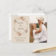 This elegant save the date card features a watercolor floral wreath with a photo of a happy couple, you can personalise the details and add your photo easily, there are more options of save the date cards available in the same collection.