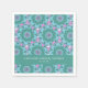 Bold bridal shower napkins with retro bohemian style floral mandala motif pattern in teal green, aqua blue, and pink violet purple.