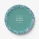 Bold bridal shower paper plates with retro bohemian style floral mandala motif pattern in teal green, aqua blue, and pink violet purple.