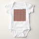 This baby bodysuit has a boho design of coral flowers repeating across the design on a field of green.