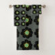 Black flowers, botanical pattern in hippie style. Boho Bathroom Towel Set.