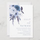Boho Flowers Dusty Blue & White Wedding Invitation
