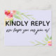 Both the back and front were accented with pretty, colourful watercolor flowers. In editable text "kindly reply" was placed, large and bold, on the front. In a modern casual handwriting, a graphic depicting "we hope you can join us!" appears below. On the back, the same unique font was used to create graphics that read "rsvp", "m", "kindly deliver to:" and "menu choice for each guest:" All other text is editable. Use the template fields to personalise as much as you wish. The background can be changed to any colour that suits you. // 100 //