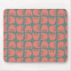 This mouse pad has a boho design of coral flowers repeating across the design on a field of green.