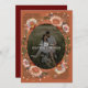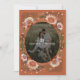 A unique take on floral wreath with touches of peach and maroon over a custom colour frame background; original illustration by Becky Nimoy.