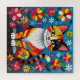 A cute cat themed puzzle. A cute colorful boho cat sitting in flowers and surrounded by butterflies. The art is in an impasto oil paper quilling style.