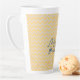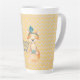 Pretty latte mug features "Love makes the world go round" quote in modern script with adorable Boho fox watercolor illustration on distressed chevron pattern background