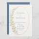 Boho Frame Blue Gold Butterflies Elegant Wedding Invitation