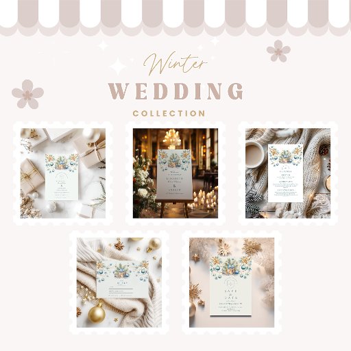 A dreamy mix of soft blue ornaments, golden stars, and frosted pine branches come together in this boho winter wedding design. A pastel palette and hand-painted gift accents evoke a magical, serene holiday spirit—chic, calm, and cosy.
