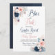 Blue or Pink Boho Gender Reveal Invitation With Navy and blush flowers
