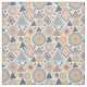 A seamless abstract pattern fabric featuring hand-drawn geometric shapes, including circles, triangles, and diamonds, in earthy terracotta, dark blue, and beige tones. The distressed, block-printed textures create an organic, rustic, and handcrafted aesthetic. Perfect for modern boho style lovers, artists, and designers who appreciate minimal yet textured patterns. A thoughtful gift for creatives, home décor enthusiasts, or anyone who enjoys earthy tones and geometric art. Ideal for autumn, rustic weddings, art-inspired occasions, and everyday use.