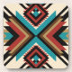 A Southwestern-inspired geometric pattern featuring striking diamond and chevron shapes in turquoise, deep red, black, and warm neutral tones. This symmetrical design draws inspiration from bohemian textiles, creating a timeless yet modern look.
