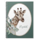 Boho-inspired notebook featuring watercolors of a giraffe in tropical florals and sage green fern leaves. Monogram with your name in a stylish dark green script.