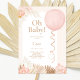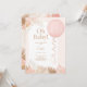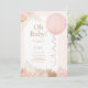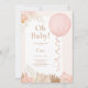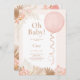 'Oh baby' baby shower invitation for a girl baby shower. A floral, boho style invitation featuring muted pink tones, dried palms, florals and pink balloon to set your baby shower theme.